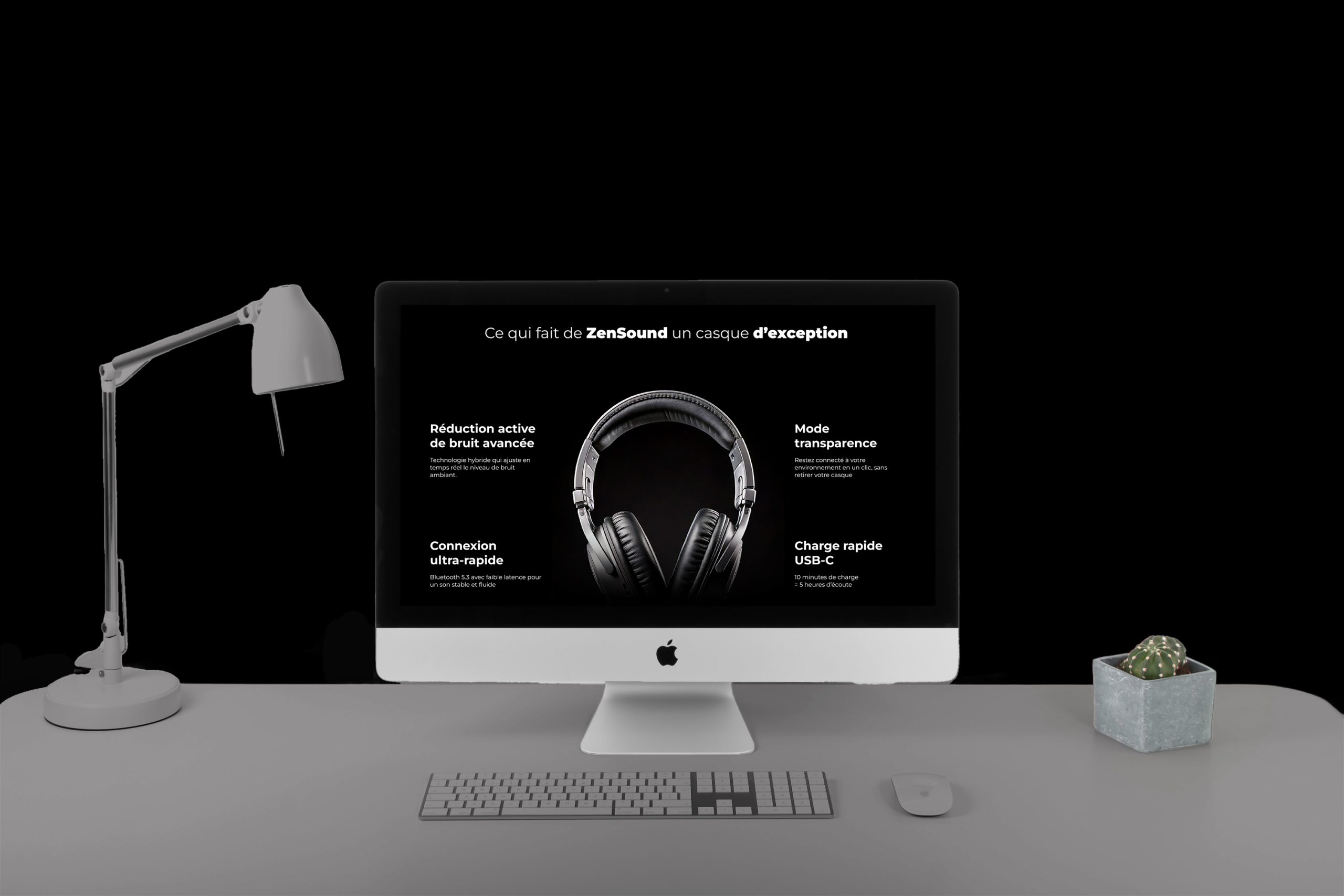 Création et prototypage d’un site web pour une marque ficitve de casques audios sans fil sur Figma.